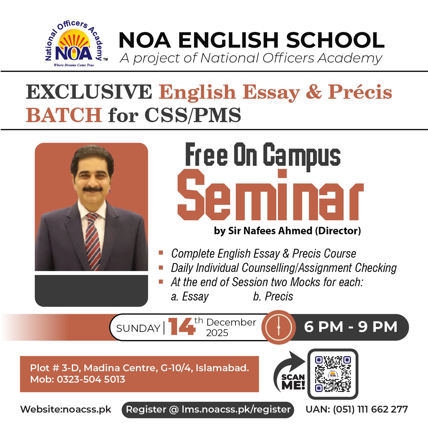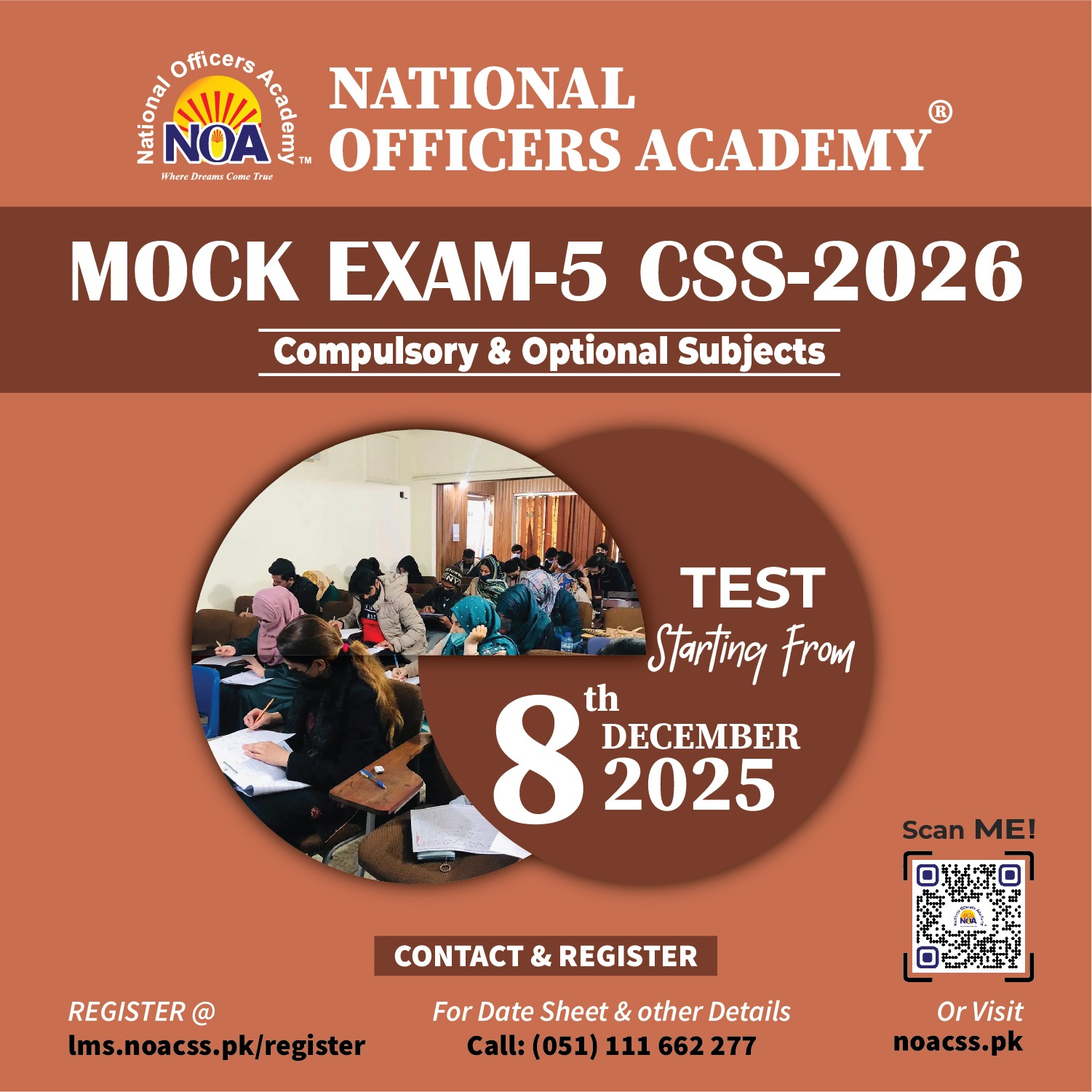 NOA| Mock Exam-5| CSS2026 NATIONAL OFFICERS ACADEMY Offers COMPLETE(Compulsory & Optional Subjects) MOCK EXAMS-5 for CSS-2026 starting from 8th Dec, 2026 In Sha ALLAH..... Facility: Just visit your nearby campus(ISLAMABAD,RWP,LHR) or attempt your exam on :https://lms.noacss.pk =>NOAINS of CSS-2026 no need to pay. Just visit your nearby campus(ISLAMABAD,RWP,LHR) or attempt your exam on :https://lms.noacss.pk How […]