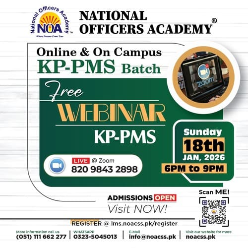 NOA | PMS-Punjab | Free Webinar 27th December,2025 (Saturday) National Officers Academy offers Free Online Webinar for PMS-Punjab at 6:00pm to 9:00pm live at ZOOM ID: https://us06web.zoom.us/j/89602340782 • Class time:6:00pm to 9:00pm * Fee for On-Campus classes : 100000/- * Fee for Online Classes : 90000/- Complete 3.5 Months On campus & Online course covering […]